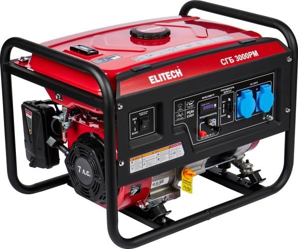 Генератор бензиновый ELITECH БИГ 3800РМ инверторный с ручным стартером предназначена для работы в качестве автономного источника электроэнергии переменного однофазного тока напряжением 230В, частотой 50Гц и максимальной мощностью 3 кВт. Электростанция может эксплуатироваться при температуре окружающего воздуха – от -15°С до +40°С.