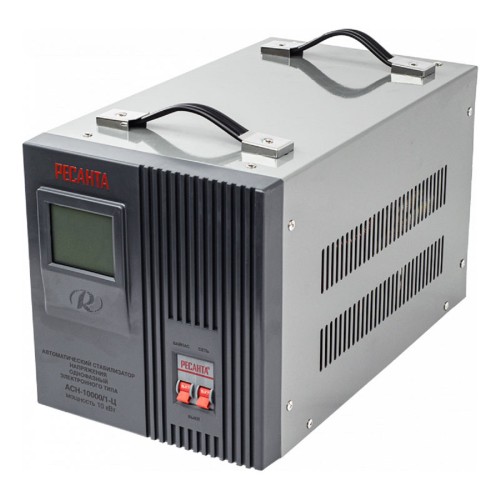 Стабилизатор напряжения Ресанта АСН 10000/1-Ц релейного типа предназначен для выравнивания входного напряжения и защиты приборов от перепадов напряжения с суммарной мощностью до 10 кВт. Работает с напряжением 220В с точностью до +/-8%. Устройство оснащено фильтрами сетевых помех, предотвращающими искажение частотной синусоиды, микропроцессорным управлением и цифровым индикатором напряжения, на котором отображаются параметры напряжения. Превышение пределов поддерживаемого входного напряжения автоматически отключает подачу питания. Прочный корпус защищает внутренние узлы аппарата от повреждений. Данный стабилизатор может обеспечивать стабильным питанием — телевизор, ресивер, DVD проигрыватель, кассовый аппарат, газовый котел.